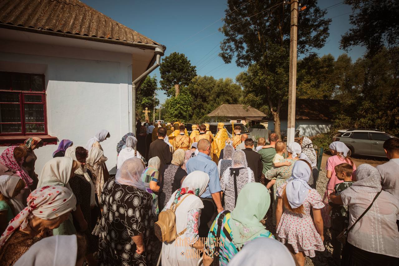 После захвата храма сторонниками ПЦУ в 2022 году религиозная община собирается на богослужение в сельском доме, приспособленном под храм. На этот раз праздничное богослужение проходило под открытым небом.