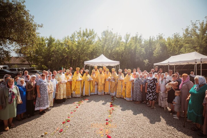 После службы духовенство и верующие совершили крестный ход вокруг приспособленного под храм помещения.