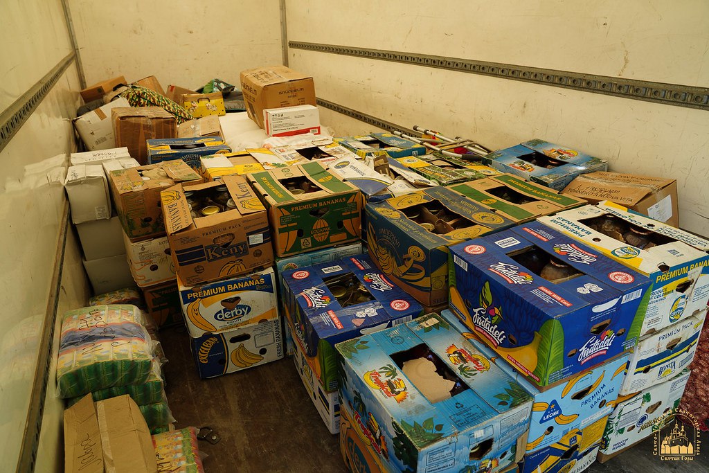 В состав груза вошли продукты питания, бытовая химия, средства гигиены, хозяйственные принадлежности, строительный инструмент, а также обувь и другие необходимые вещи. Часть продуктов передал Банченский Вознесенский монастырь по благословению митрополита Лонгина.
