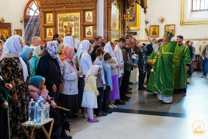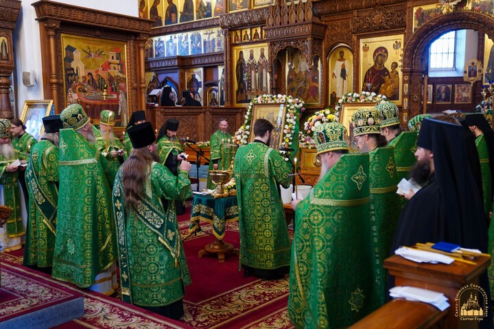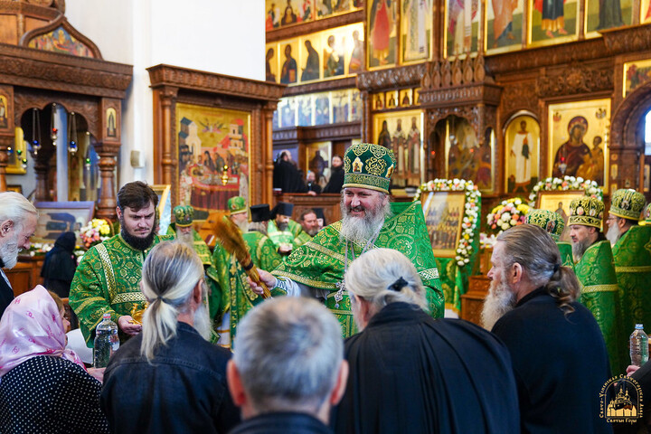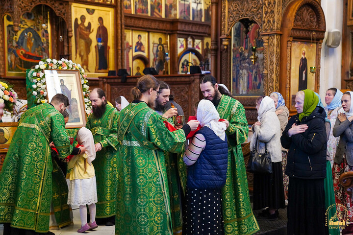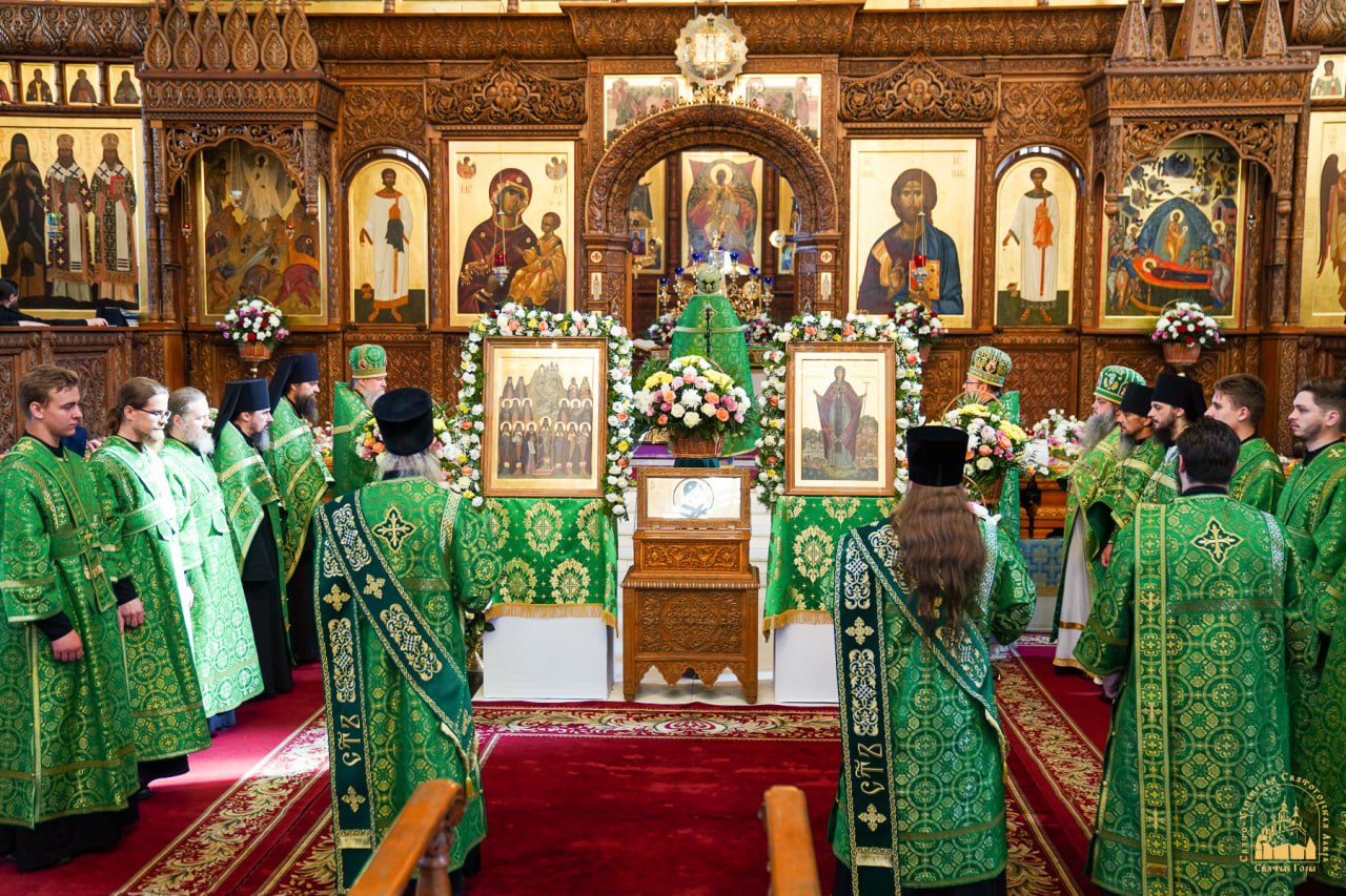 В день праздника богослужения начались ранним утром и завершились Божественной литургией и водосвятным молебном преподобным отцам Святогорским.