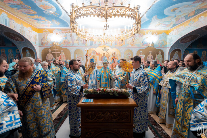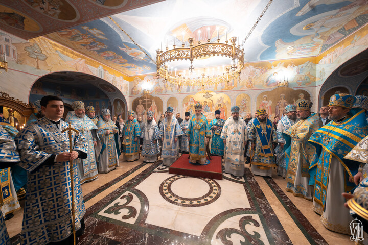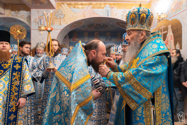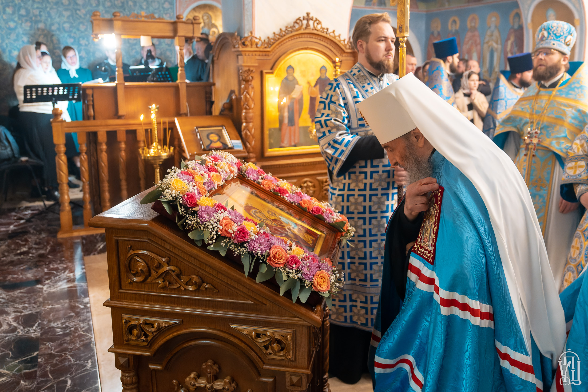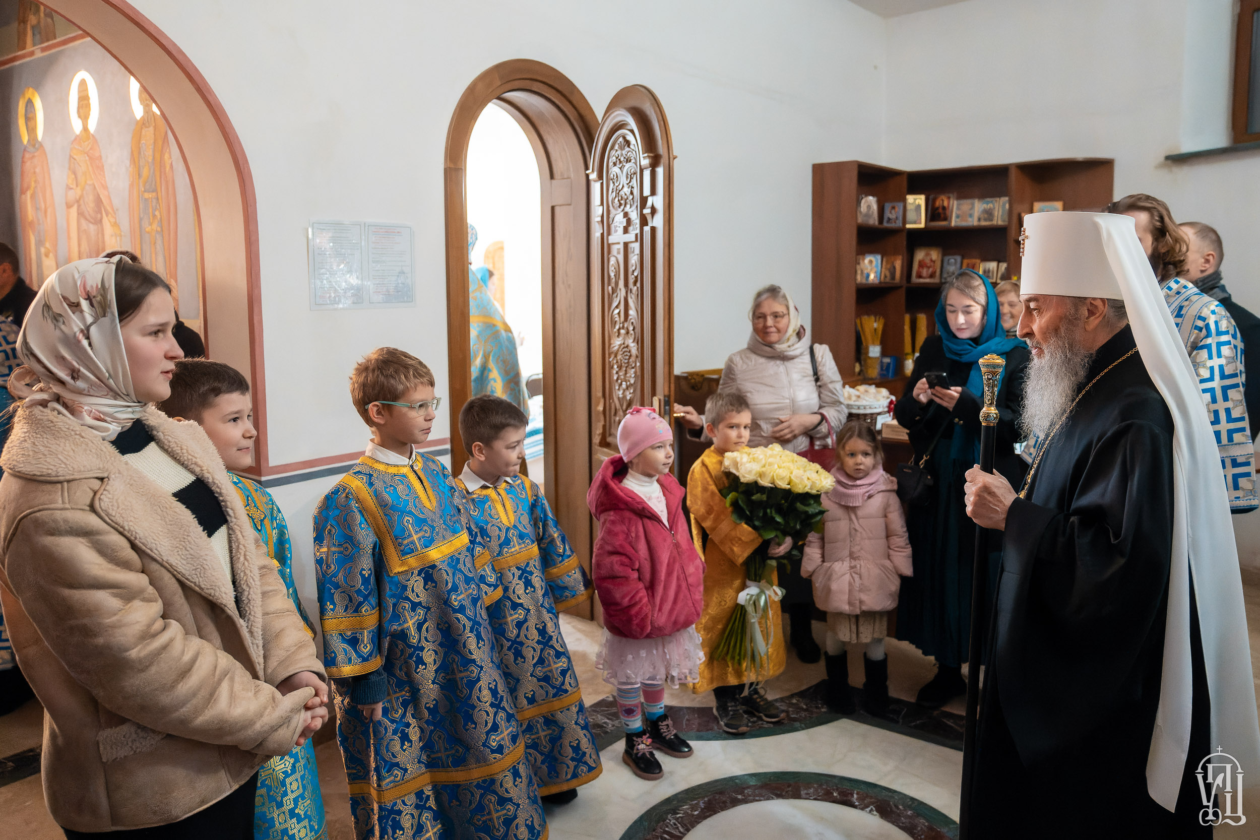 Предстоятелю сослужили управляющий делами УПЦ митрополит Бориспольский и Броварской Антоний, архиепископ Белогородский Сильвестр, архиепископ Ирпенский Лавр, архиепископ Бородянский Марк, епископ Гостомельский Аркадий, епископ Боровский Климент, духовенство храмового комплекса и гости в священном сане.