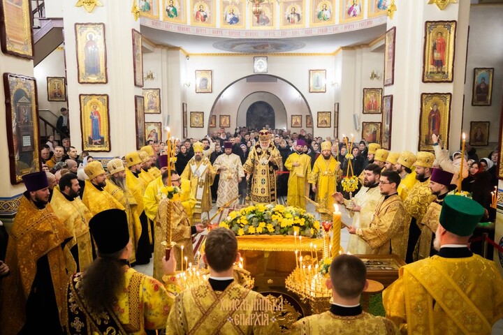 В этот вечер митрополит Владимир в сослужении митрополита Львовского и Галицкого Филарета и митрополита Хмельницкого и Староконстантиновского Виктора возглавил праздничное всенощное бдение по случаю престольного праздника собора.