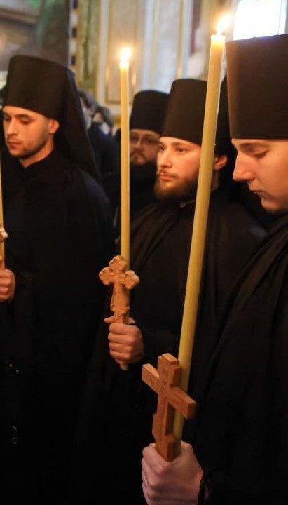 В храме Агапита Печерского Киево-Печерской лавры три студента Киевской академии и семинарии приняли монашеский постриг.
