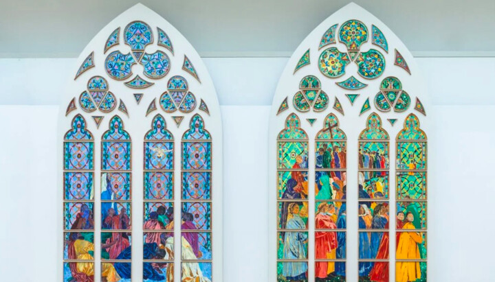 Нынешний витраж (справа) и новый (слева). Фото: открытые источники Нынешний витраж (справа) и новый (слева). Фото: открытые источники