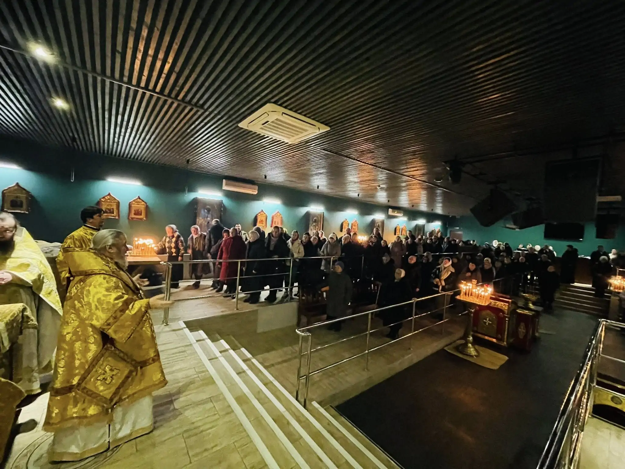 Перед началом богослужения архипастырь совершил водосвятный молебен и окропил временное помещение святой водой. Во время сугубой ектении были вознесены особые молитвенные прошения о мире на украинской земле.