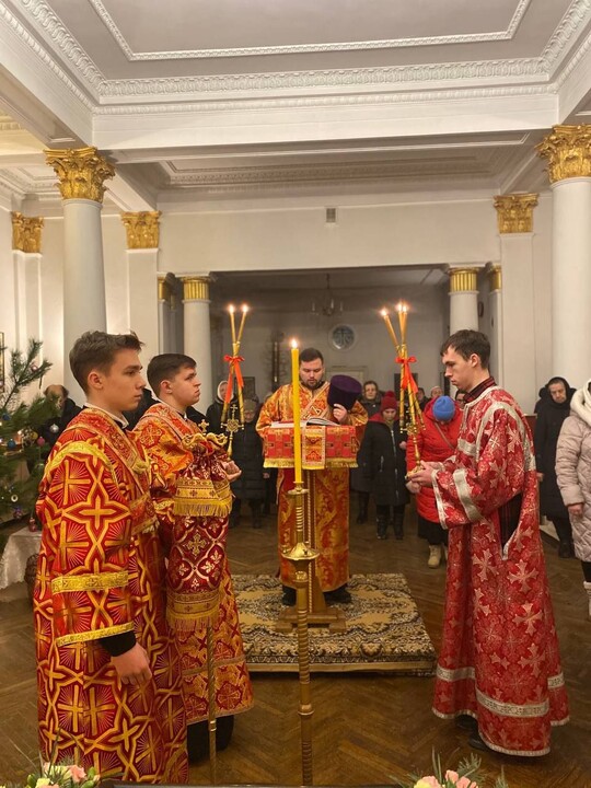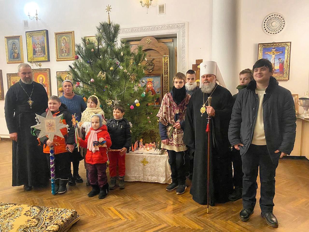 Завершилось богослужение поздравлением воспитанников воскресной школы при храме-имениннике, которые представили рождественский вертеп и исполнили колядки, поздравив прихожан с праздником Рождества Христова.