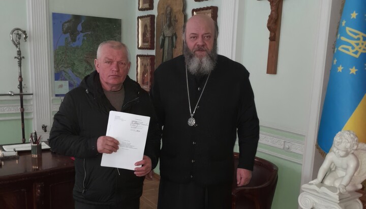 Михаил Зинкевич с представителем «перешедшей» общины. Фото: ПЦУ Михаил Зинкевич с представителем «перешедшей» общины. Фото: ПЦУ
