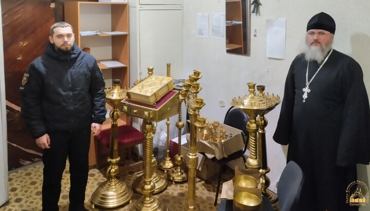 Полицейские нашли и привезли в обитель похищенное. Фото: Святогорская лавра Полицейские нашли и привезли в обитель похищенное. Фото: Святогорская лавра
