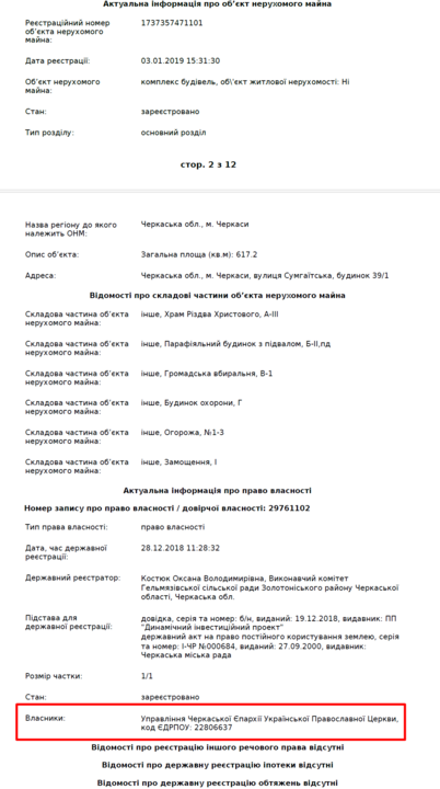 Представители епархии подчеркнули, что религиозной организации «Приход Рождества Христова Черкасской епархии УПЦ (ПЦУ)» не существует в природе – это вымышленная структура. Более того, не существует и юрлица прихода, поскольку церковь официально принадлежит юрлицу Черкасской епархии УПЦ. Право собственности епархии на храм Рождества Христова было установлено еще покойным митрополитом Софронием. В епархии предоставили СПЖ соответствующую выписку из реестра недвижимости.