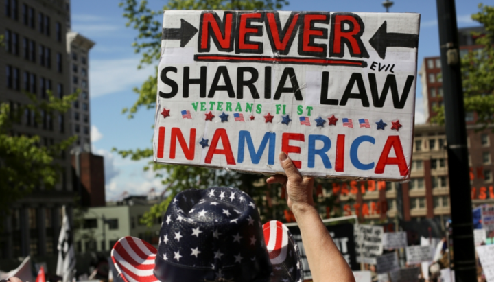 Плакат против закона шариата в Америке. Фото: aljazeera Плакат против закона шариата в Америке. Фото: aljazeera