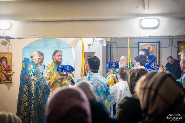 Божественную литургию возглавил управляющий Черкасской епархией митрополит Черкасский и Каневский Феодосий. Ему сослужили секретарь епархии протоиерей Василий Вознюк, настоятель прихода протоиерей Евгений Буркацкий и духовенство города. За богослужением была вознесена сугубая молитва о Церкви, претерпевающей гонения, после чего архипастырь обратился к верующим со словами поддержки.