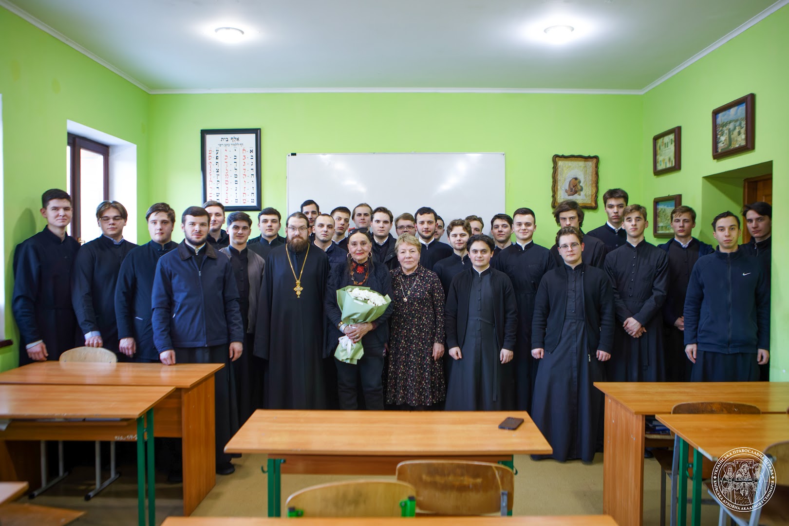Во время встречи семинаристы задавали вопросы о творческом пути актрисы и истории украинского кинематографа. В завершение архимандрит Рафаил от имени ректора Киевской духовной академии и семинарии архиепископа Белогородского Сильвестраи и студентов поблагодарил гостью за встречу, после чего было сделано общее памятное фото.