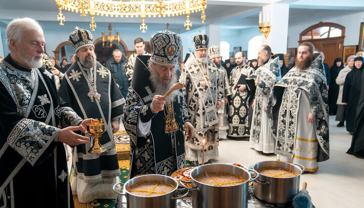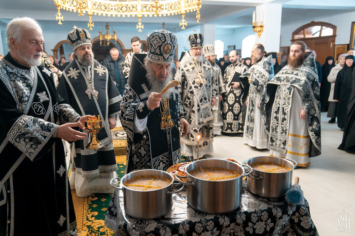 Предстоятель УПЦ возглавил великопостное богослужение и освятил коливо в столичном монастыре.