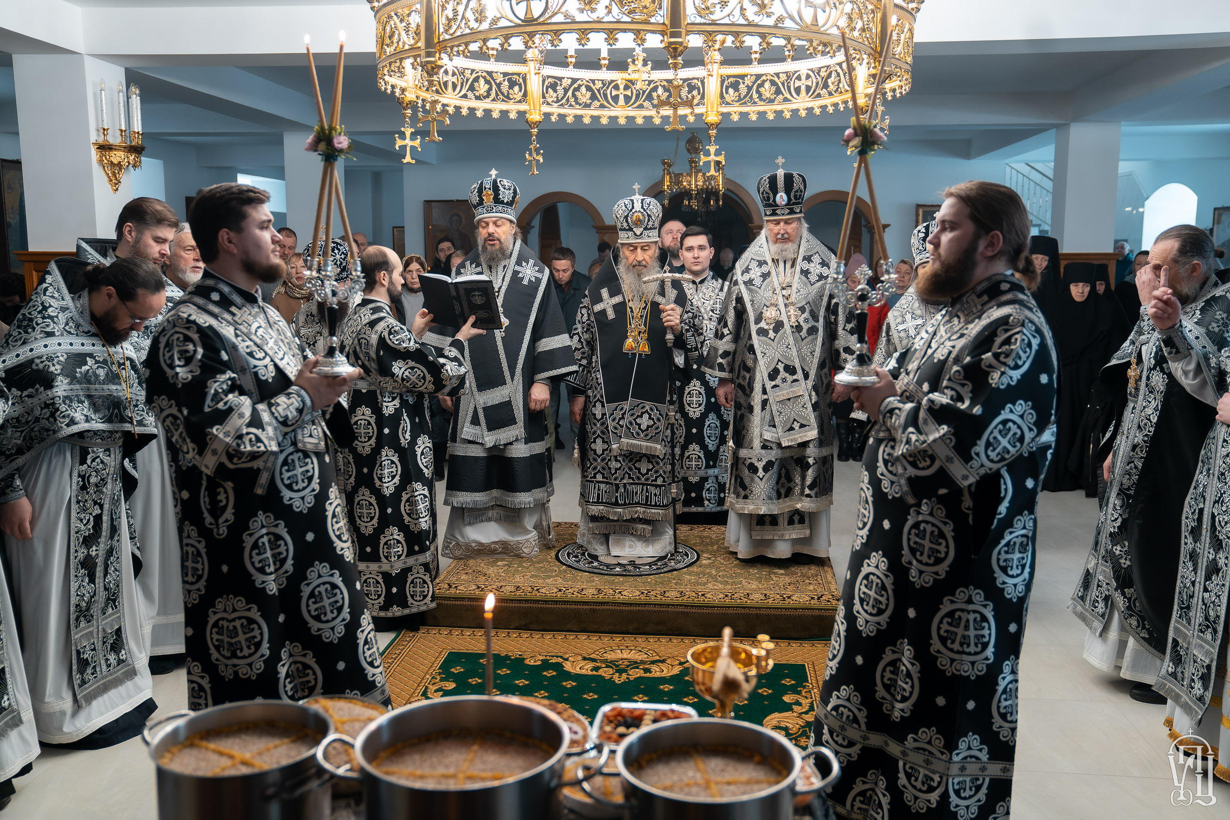 После окончания Литургии состоялся молебен с каноном великомученику Феодору Тирону, по завершении которого Блаженнейший благословил коливо – вареные зерна пшеницы, приготовленные в память о чуде святого Феодора, предостерегшего христиан от употребления оскверненной пищи во времена императора Юлиана Отступника.
