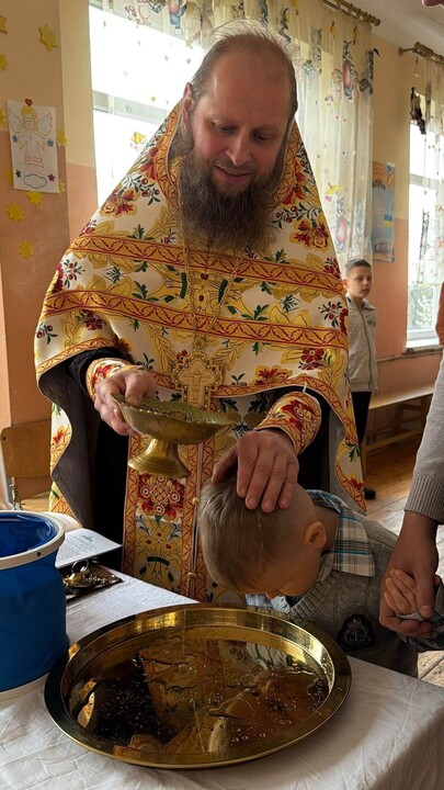 Настоятель Свято-Троицкого храма протоиерей Ярослав Попович покрестил пять детей из числа внутренне перемещенных лиц детского дома «Барвинок», которые были вынуждены покинуть Днепр.