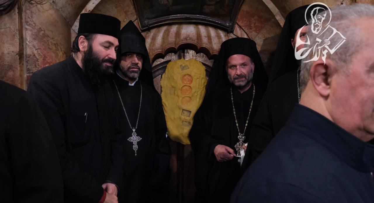Богослужение в храме над Гробом Господним, где сошел Благодатный огонь, возглавил Иерусалимский Патриарх Феофил.