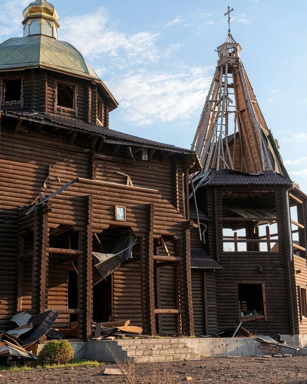 На опубликованных кадрах видно, что значительная часть кровли храма фактически уничтожена. Осколки и взрывная волна повредили фасад здания, а также привели к серьезным разрушениям внутри церковных помещений. Помимо самой церкви, пострадала также территория вокруг нее.