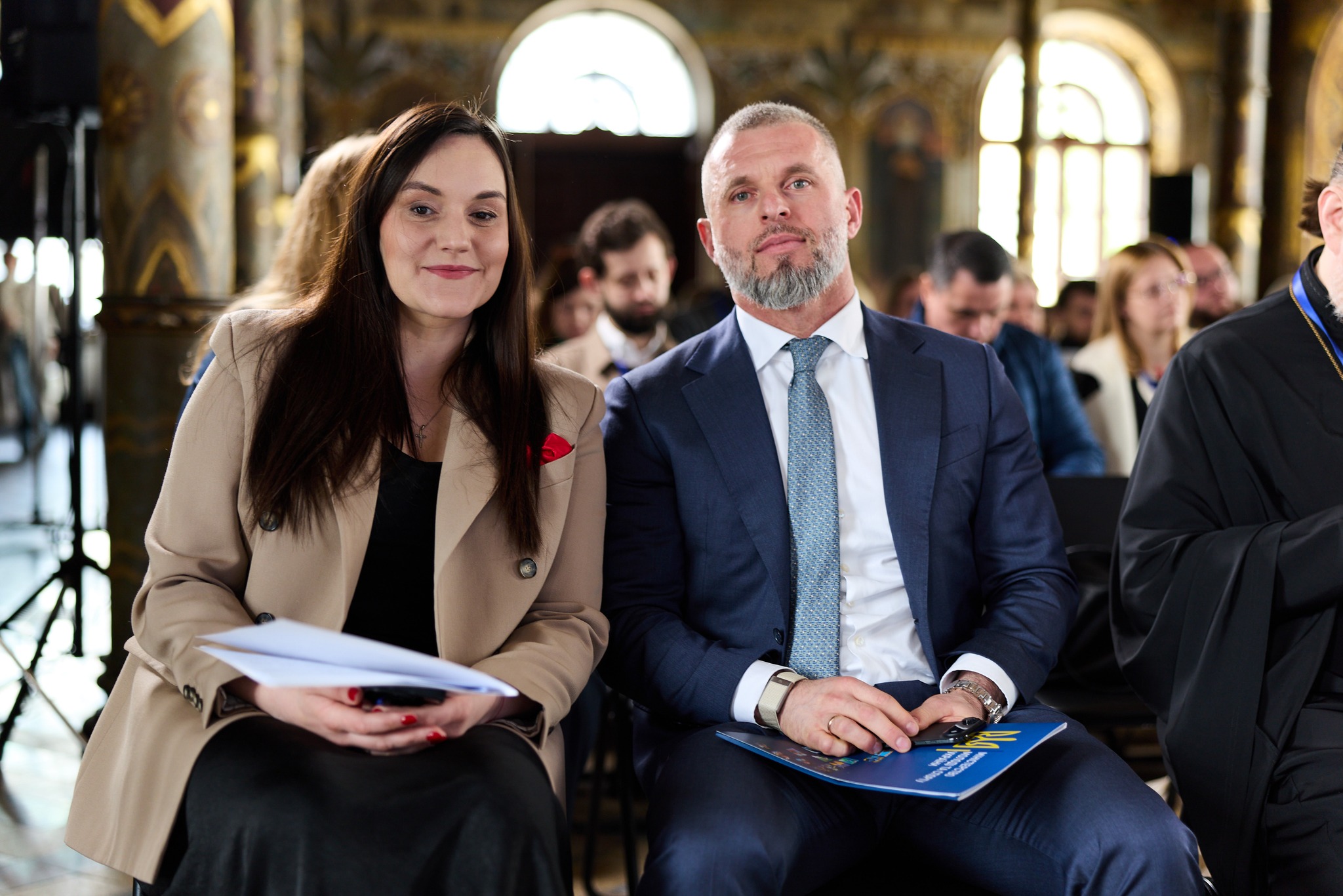 В храме расставили стулья, а на вратах, отделяющих Трапезную палату от церкви преподобных Антония и Феодосия, повесили огромный экран. Перед ним поставили кресла и усадили спикеров: главу лаврского заповедника максима Остапенко, министра Министерства молодежи и спорта Матвея Бедного, а также спикера ПЦУ Ивана (Евстратия) Зорю.
