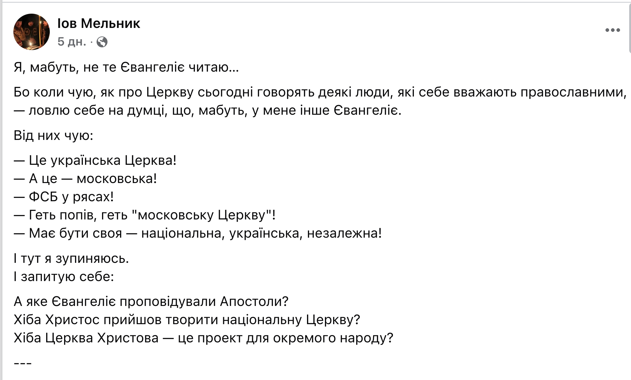 Потому что когда слышу, как о Церкви сегодня говорят некоторые люди, которые считают себя православными, — ловлю себя на мысли, что, наверное, у меня другое Евангелие.