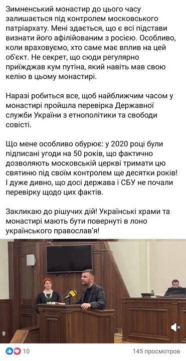 Сегодня скандальный народный депутат Игорь Гузь, известный своей ненавистью по отношению к УПЦ, выступая на сессии Волынского облсовета, назвал "подонками" (укр. "покидьками") тех чиновников, которые посмели в 2020 г. заключить длительные договора аренды с монастырями УПЦ на Волыни. Гузь требует разорвать все договора аренды и лишить УПЦ на Волыни вообще всех храмовых и монастырских помещений. по его мнению, этим также обязаны заняться СБУ и Госслужба по этнополитике и свободе совести (ДЕСС).
