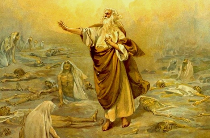 Особливо важливі два знаменних видіння пророка - про храм Господній, і про сухі кістки на полі, яким Дух Божий дав нове життя.