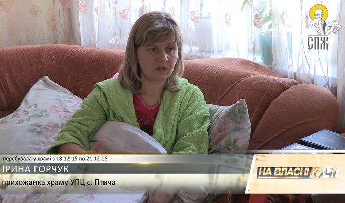 Коментуючи дії прибічників УПЦ КП, Ірина заявила: «Коли дивлюся на тих людей, мені їх шкода. Кума живе по сусідству, вона мені кричить: «Щоб ти здохла». Чи Оля Фурминець кричить: «Щоб ти здохла». Моя однокласниця – ми дружили. Бачите: дав Бог – не здохла. Бо там, мабуть, всі за мене молились. Я на них (представників УПЦ КП – ред.) дивлюся, в них очі як у скажених собак. Наші люди стоять, моляться, сутки молитва не стихає. На вулиці, в гаражі, в храмі… А вони? Приїхав їхній Ігор Загребельний в суботу правити. То кричав в рупор, щоб нашу молитву перебити», – розповіла жінка.