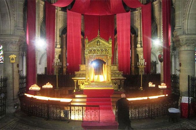 У звичайний час святиня зберігається у складеному вигляді всередині релікварію у базиліці Сен-Дені і виставляється на поклоніння один раз у 50 років.