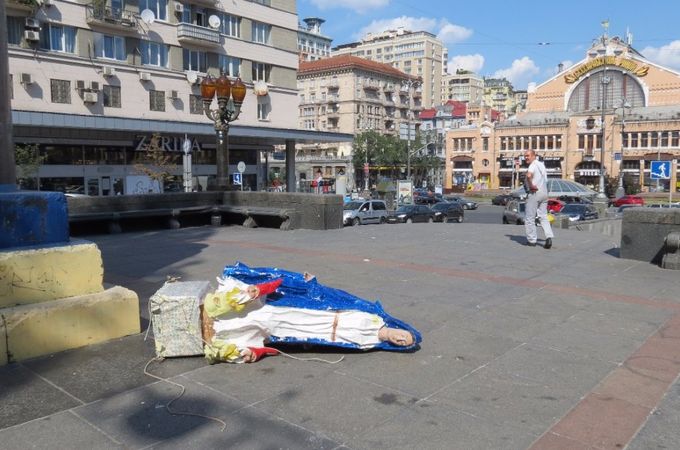 Статуя Богородиці не встояла на постаменті пам'ятника Леніну в Києві