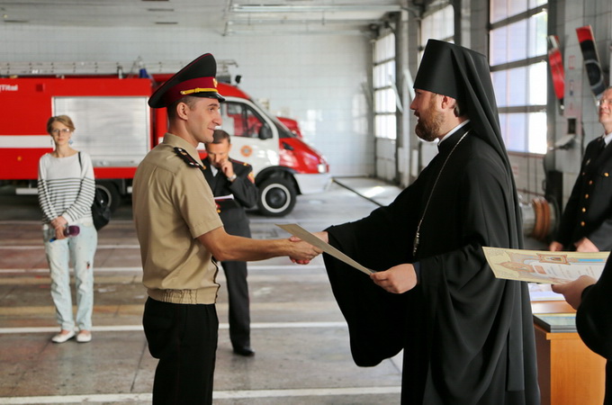 Також, виконуючи благословення Блаженнішого Митрополита Онуфрія, архімандрит Іларіон за заслуги перед Українською Православною Церквою вручив ордени та грамоти Української Православної Церкви співробітникам ДСНС Петру Дривинському, Михайлу Данилюку, Андрію Ватоліну та іншим співробітникам служби за старанні труди на славу Святої Церкви.