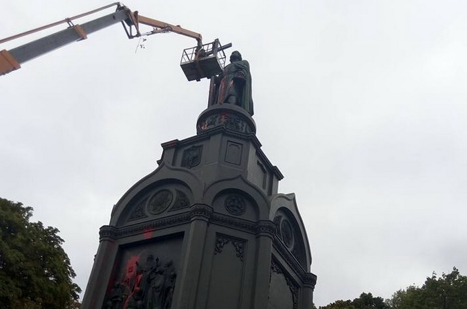 26 вересня у Києві від рук вандалів постраждав найстаріший пам'ятник столиці – бронзовий монумент князеві Володимиру на Володимирській гірці, який був встановлений в місті ще у 1853 році. При висоті пам'ятника 20,4 метрів невідомі дістали фарбою до пояса князя. Червоною фарбою забруднений весь постамент – мабуть, ємність кидали в монумент кілька разів, а потім ганчіркою вимазали пам'ятну табличку біля підніжжя пам'ятника, ганчірка валялася поруч на клумбі.