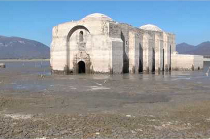 Безпілотник зафільмував старовинний храм у Мексиці, який піднявся з води (ВІДЕО)