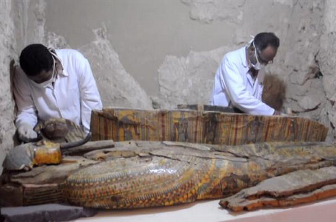 Усередині гробниці віком 3500 років окрім мумій були виявлені десять дерев'яних саркофагів і більше тисячі погребальних статуй різних божеств. Припускається, що гробниця була побудована за часів 18-ї династії царів Єгипту і належала вельможі на ім'я Ейшат.
