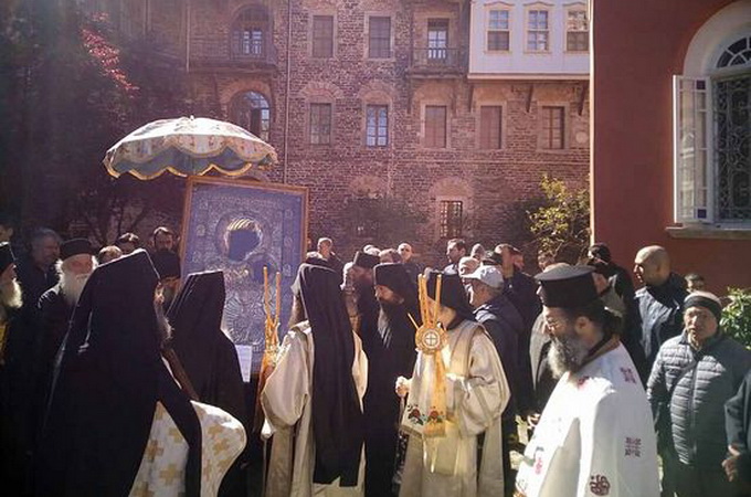 В атмосфері пасхальної радості в Іверському афонському монастирі відбувся традиційний Хресний хід із чудотворним образом Пресвятої Богородиці «Вратарниця» («Іверська») у п'ятницю Світлої седмиці.