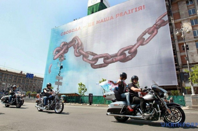 Маршрут мотопробігу пролягав від Софійської площі по Хрещатику, по набережній Дніпра, повз пам'ятник засновникам Києва у Наводницькому парку, де учасники пробігу встановили прапор із гаслом «Свобода – наша релігія». Завершився пробіг на лівому березі Дніпра біля Міжнародного виставкового центру на Броварському проспекті, де проходить «Євробачення».