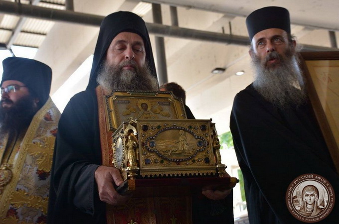Велику святиню з Афону у поїздці в Болгарію супроводжують ігумен Пантелеймонового монастиря архімандрит Євлогій та братія руської святогірської обителі в священному сані – отець Серафим та отець Миколай.