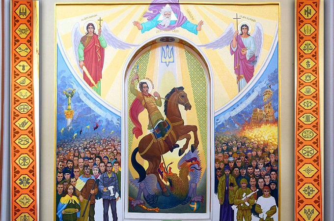 У Кременці Тернопільської області у Свято-Преображенському соборі Київського патріархату на 70 квадратних метрах пишуть фреску з переможеним двоголовим орлом та активістами Майдану. Про це повідомляє «Типовий Кременець».