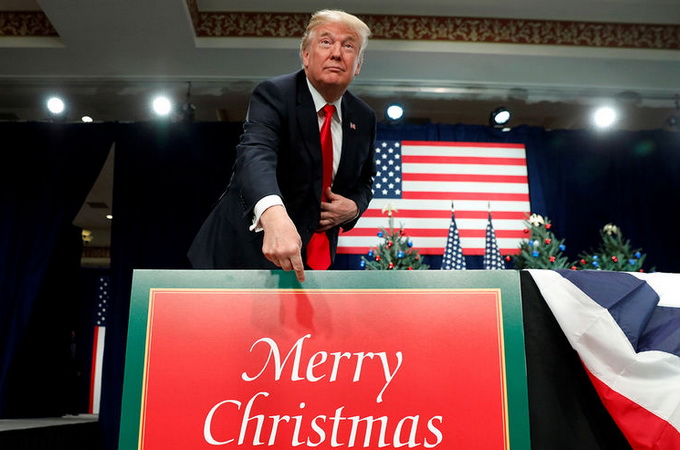 25 грудня у своєму привітанні американцям зі святом Трамп промовив слова «щасливого Різдва!», які політики останнім часом не вживають публічно з міркувань толерантності. Зазвичай у таких випадках вважають за краще використовувати нейтральне: «щасливих свят».