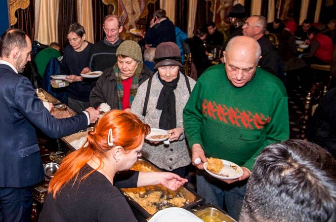 Безкоштовним обідом нагодували знедолених людей: безпритульних, інвалідів, самотніх літніх людей.