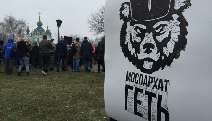 Оскорбительные плакаты на акции радикалов возле Десятинного монастыря