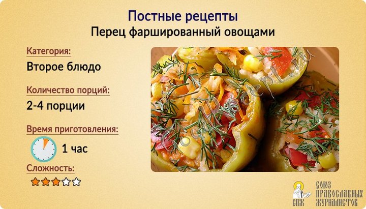 Пісні рецепти: Перець, фарширований овочами