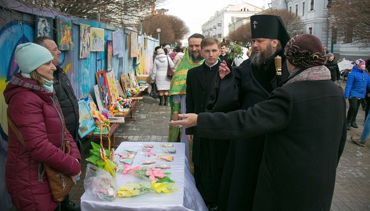1 квітня, у свято Входу Господнього в Єрусалим, в рамках організованої Сумською єпархією акції «До Світлого Дня – світлі вчинки», біля Спасо-Преображенського кафедрального собору м. Суми відбувся ярмарок.