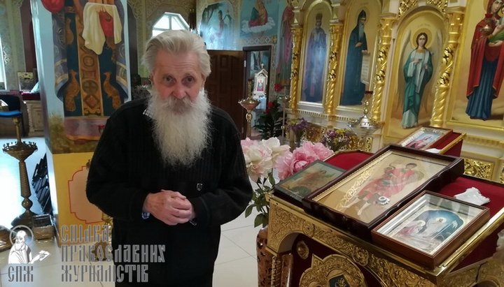 Невелика кімната в просторому двоповерховому будинку. Особистий простір побіленого сивиною старця заповнено іконами, православною літературою, фотографіями батьків, ликами відомих діячів Української Православної Церкви.