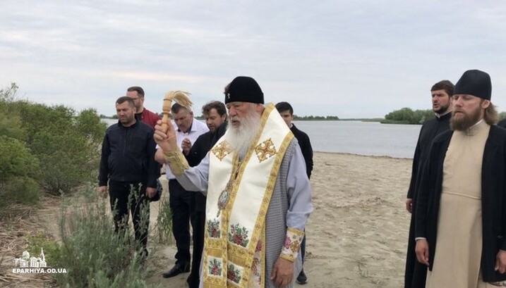 Митрополит Одеський і Ізмаїльський Агафангел освячує місце під поклінний хрест в дельті Дунаю