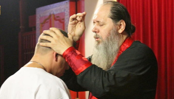 Протоієрей Володимир Головін проводить сеанс «духовного лікування»