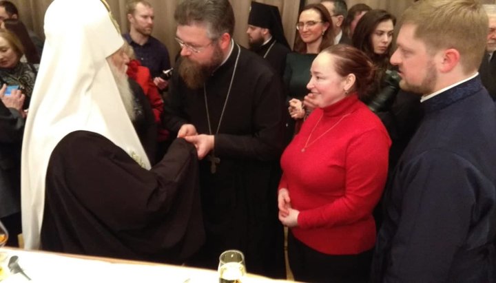 Екс-клірик Андрій Дудченко бере благословення у Філарета