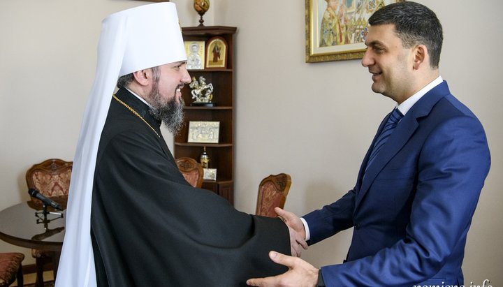 Епифаний очень рад подарку Гройсмана. Фото: ПЦУ