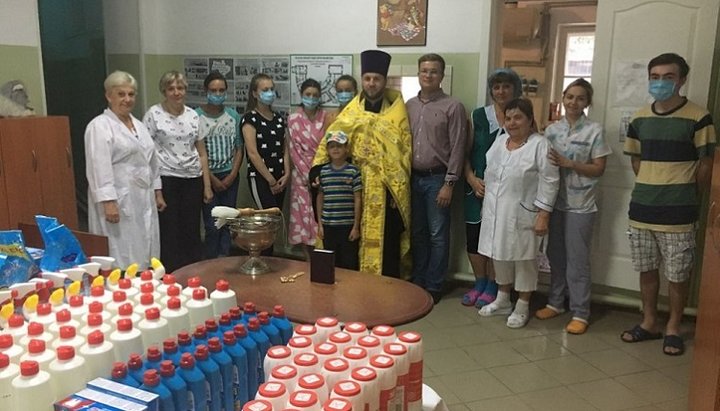 Завідуюча дитячого відділення диспансеру Олена Кулинич подякувала представникам монастиря УПЦ за подарунки і посильну допомогу.