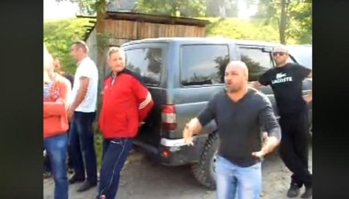 Провокатори з ПЦУ перекрили дорогу до каплиці УПЦ. Фото: скрін відео