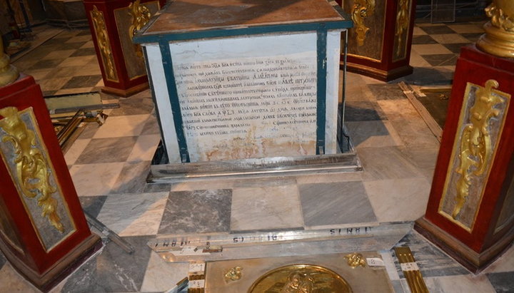 «При знятті мідного із золоченням і посрібленням окладу престолу Андріївської церкви (XVIII ст.) для планової реставрації, на кам'яній основі під ним були виявлені 13 рядків невідомого тексту (діпінті). Велика частина тексту (9 рядків) була з невідомих причин забіла, але не знищена. До цього часу про напис не було жодної згадки», – йдеться в повідомленні.