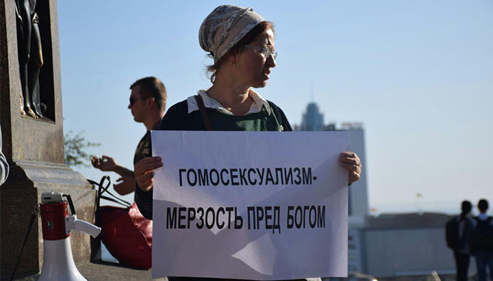 Учасниця протестної акції проти гей-параду в Одесі. Фото: gcshelp.org